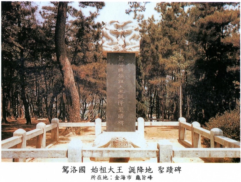후한의 시조인 광무황제 건무18년 임인(서기 42년) 3월 상사일 그들이 사는 곳에서 북쪽이 되는 구지봉(龜旨)에서 수상한 소리가 있어 사람을 불렀다. 구간들과 마을 사람 2.3백인이 이곳에 모여있었다. 사람들의 음성이 나는 듯 했으나 그 형상은 보이지 않고 그 음성만 내었다. “여기 누구가 있느냐?”고 하였다. 구간들은 대답하기를 “저희들이 있습니다.”고 하였다. 또 말하되 “네가 있는 곳이 어디냐?”고 물었다. 또 대답하기를 “구지로 소이다”고 하였다.