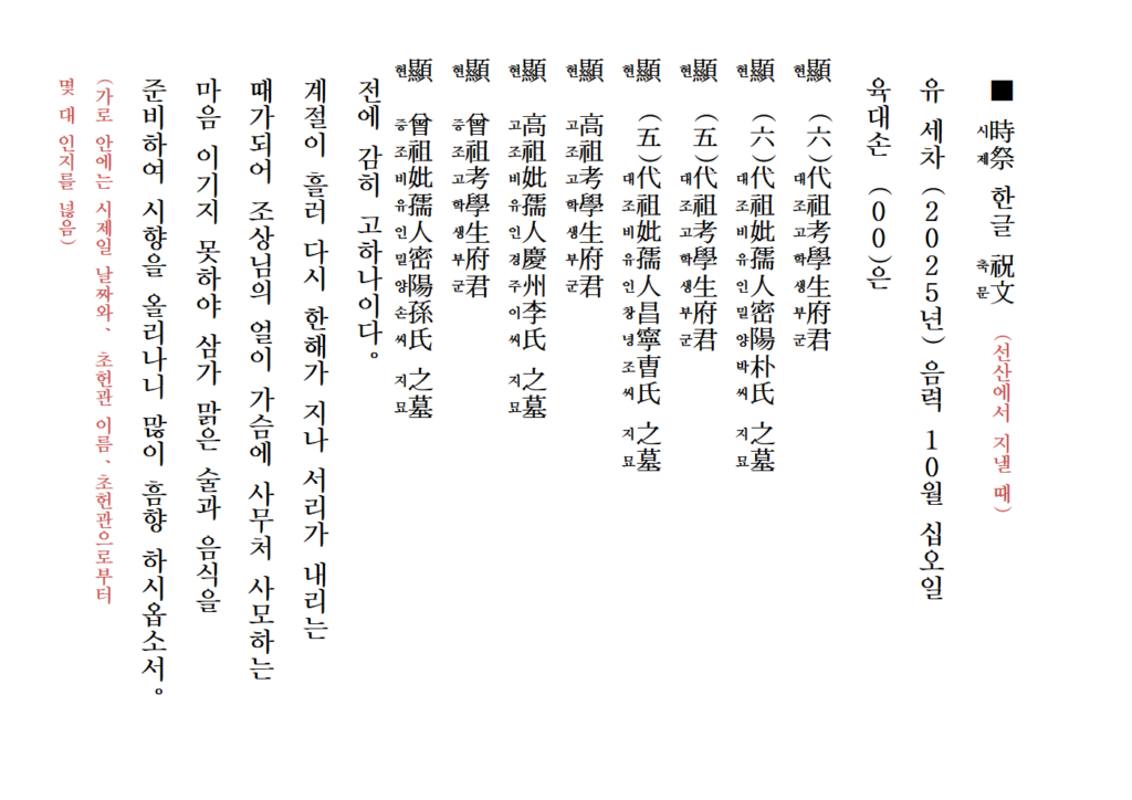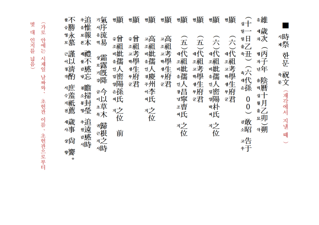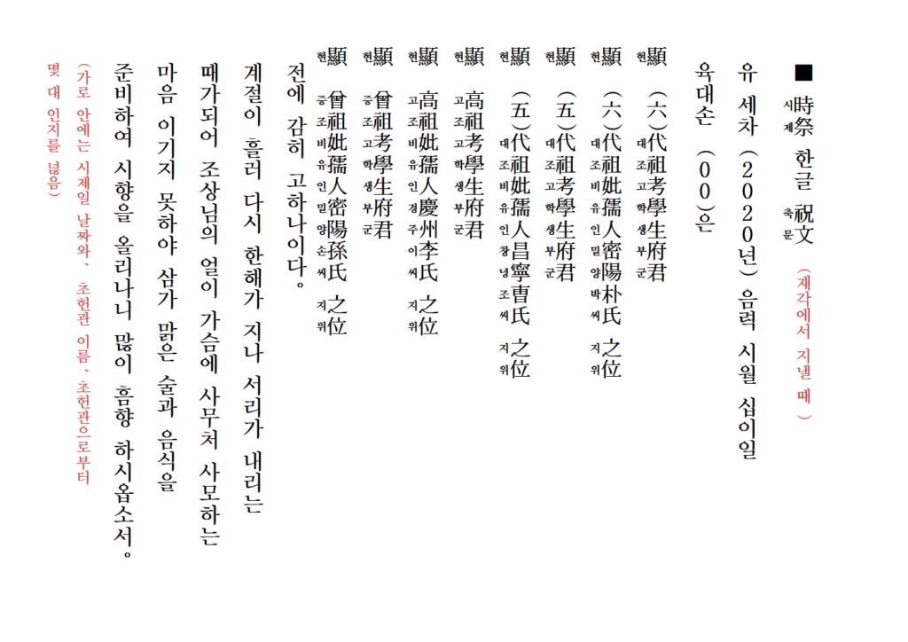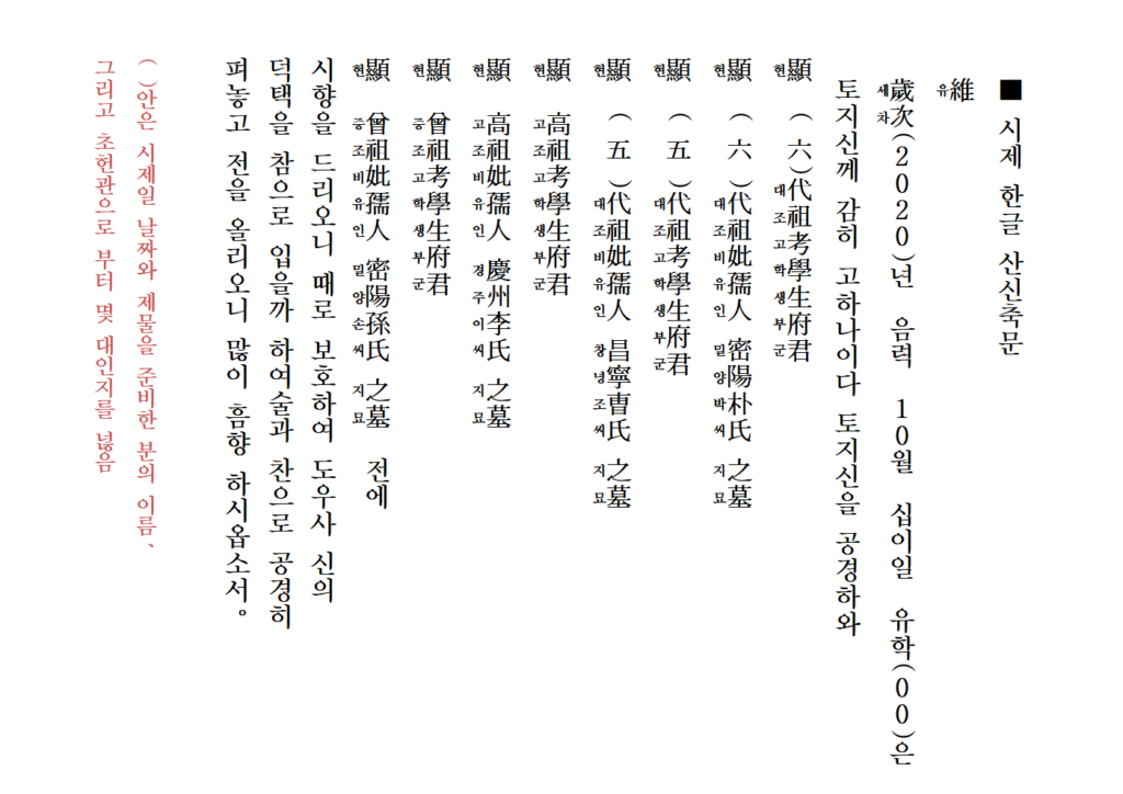 시제 제사 축문 쓰는 방법